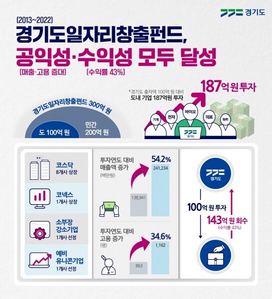 경기도, 2013년부터 운용한 ‘경기도일자리창출펀드’ 통해 기업 성장 견인