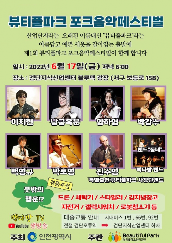 입주기업 근로자 뿐만 아니라 인천시민 누구나 무료로 관람할 수 있으며 유튜브 ‘백다방TV’로도 생방송 될 예정이다.