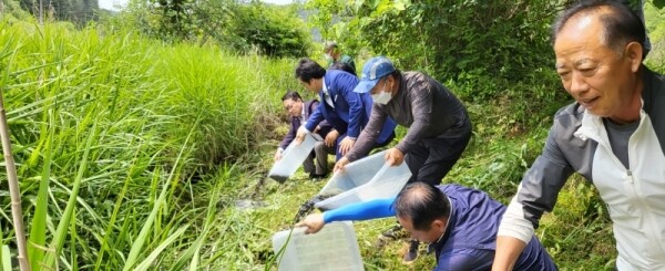 ▲ 가평군 북면행정복지센터, 북방산 개구리 시험 방류 실시