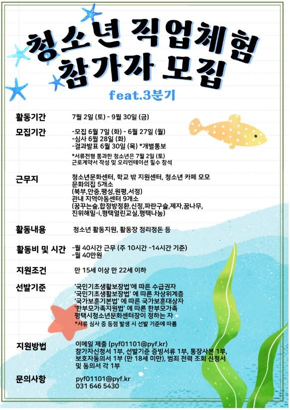 선발된 청소년은 평택시청소년문화센터 및 5개 청소년문화의 집, 학교밖 지원센터 꿈드림, 청소년카페 모모, 9개 지역아동센터 등 총 17개 기관에서 3개월간 활동하게 된다.