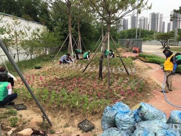 이날 여름꽃 식재에는 부녀회원 10여명이 참여했으며 행정복지센터 앞 꽃밭에 5,000본, 도로에 800본을 식재했다.