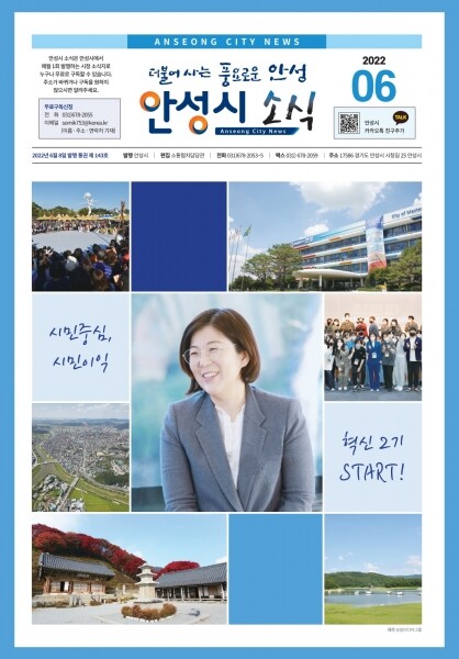 안성시 소식 6월호는 지방선거 이후 발행하는 시정 특집으로 시장 취임을 맞아 앞으로 민선 8기 안성시의 청사진을 그려나가는 내용이 담겼다.
