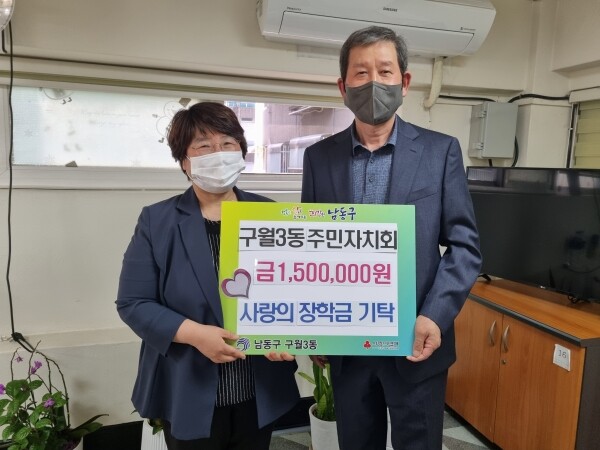 구월3동 주민자치회는 지난해부터 반기별로 150만원씩 해마다 총 300만원 상당의 장학금을 사회복지공동모금회를 통해 정기적으로 후원하고 있다.