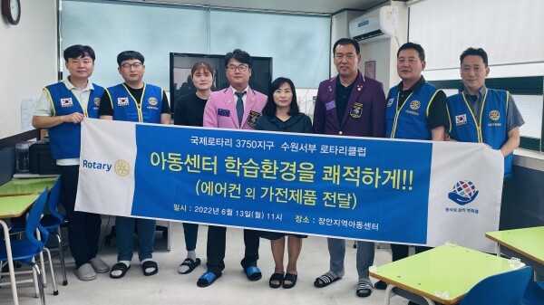 [뉴스써치] 13일 오전 11시, 국제로타리 3750지구의 “수원서부 로타리클럽”은 장안지역아동센터에 아이들의 학습환경을 쾌적하게 할 수 있도록 에어컨 외 가전제품을 지원했다.