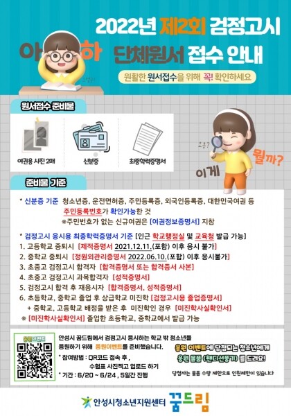 안성시 ‘꿈드림’, 2022년도 제2회 검정고시 단체원서접수 실시