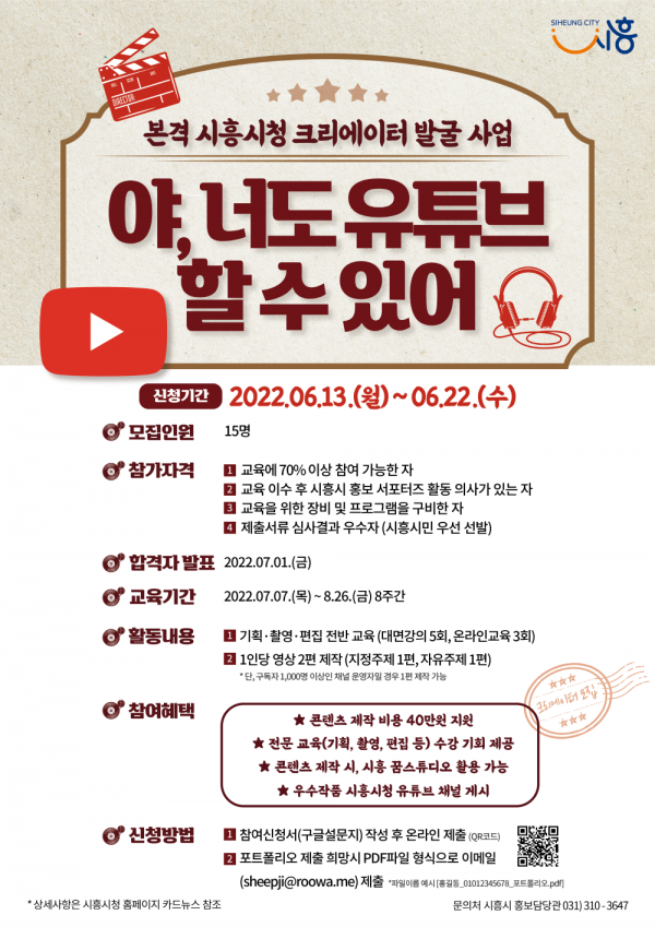 [뉴스써치] 시흥시는 지난 6월 13일부터 오는 22일까지 ‘2022 시흥 크리에이터 제3기 양성 교육’ 참여자를 모집한다.