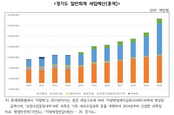 경기도 일반회계 예산기준의 재정자립도는 2009년 75.9%에서 2021년 63.7%로 재정자주도 역시 2009년 84.4%에서 2021년 73.7%로 각각 하락하는 등 재정수입 충당 능력과 재정지출 재량이 크게 약화했다.