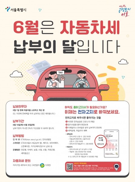 한대희 지방소득세과장은 “이번 납부 기한을 놓치면 3%의 가산금, 번호판 영치 등 불이익을 받을 수 있는 만큼 놓치지 않도록 미리 납부할 것”을 당부했다.