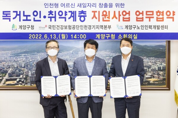 이번 협약은 최근 계양구가 ‘인천형 어르신 새 일자리 공모’에 선정되면서 관련 사업을 3개 기관이 협업해 추진하기 위해 마련됐다.