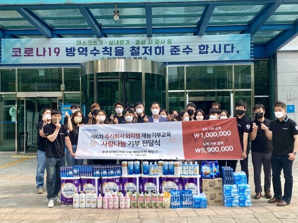 ㈜와치캠은 보안용 CCTV카메라 전문 제조업체로 지난 2020년 6월 생필품 기부를 시작으로 계양구에 꾸준한 나눔 활동을 이어오고 있다.