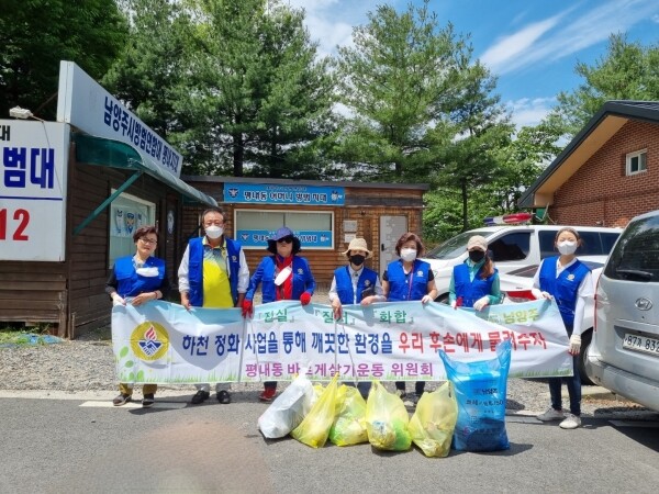 이날 참여한 회원들은 평내동 상가 골목길과 무단투기지역 등 마을 곳곳을 돌아다니며 쌓여 있는 쓰레기 250리터 분량을 줍고 분리수거했다.