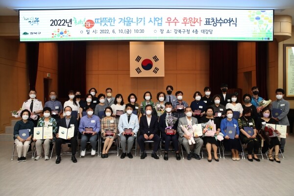 구는 지난 10일에 강북구청 대강당에서 이웃들을 위해 따뜻한 마음을 전달해준 우수기부자 43명에게 표창장을 수여했다.