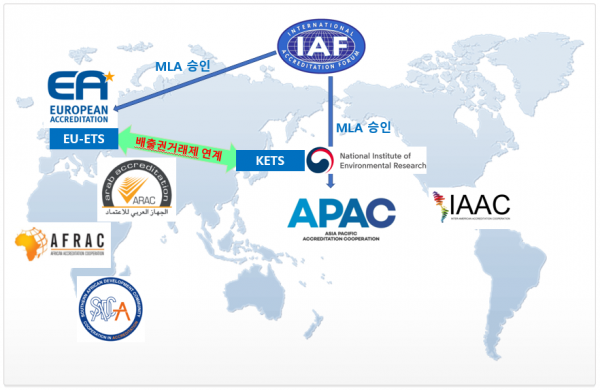 유럽연합의 경우, 지난 2008년 유럽인정협력기구의 상호인정협정을 활용해 유럽연합 비회원국인 노르웨이, 아이슬란드 등을 유럽연합 배출권거래제에 편입하고 스위스와는 관련 제도를 연계해 운영하는 등 국제인정협력기구 체계 안에서 국가 간 상호인정협정으로 국제탄소시장의 무역장벽을 낮추고 있다.