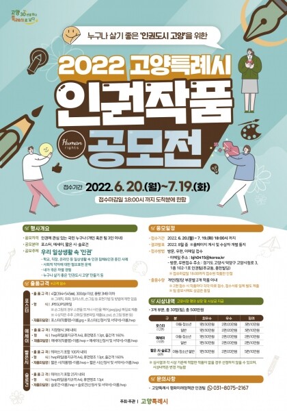 [뉴스써치] 고양시가 지역사회 내 인권존중 문화를 확산하고 생활 속 인권 감수성을 향상하기 위해 ‘2022 고양특례시 인권작품 공모전’을 개최한다.