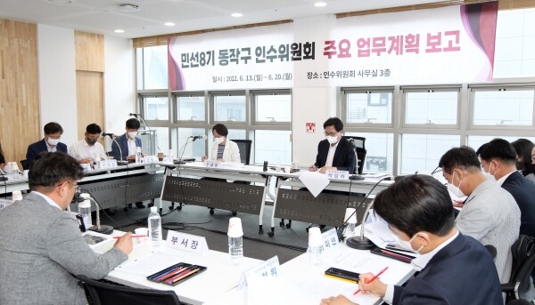 첫 업무 보고회는 13일 오전 10시 인수위원회 사무실에서 박일하 동작구청장 당선인과 구혜영 인수위원장, 23명의 인수위원 및 자문위원이 참석한 가운데 열렸다.