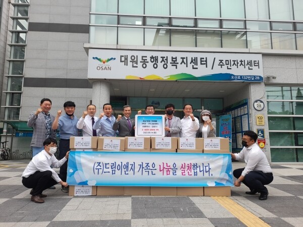 이날 ㈜드림이앤지 김삼수 대표이사는 "이번 기부는 코로나19 장기화로 힘들고 지친 우리 이웃들에게 건강한 삶을 도모하기 위해 후원했다 앞으로도 이웃들을 먼저 생각하고 지역사회를 더욱 밝게 빛낼 수 있도록 따뜻한 나눔과 후원에 동참하겠다”고 기탁 소감을 전했다.