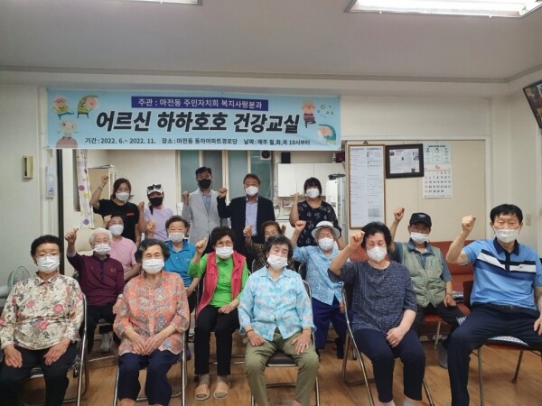 건강교실은 매주 월, 화, 목요일 오전 10시에 마전동 동아아파트 경로당에서 진행되며 관내 어르신은 누구나 무료로 참여할 수 있다.