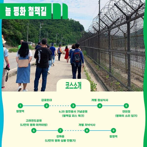 군 관계자는 “남북 평화를 상징하는 늘 평화의 철책길에서 평화를 느낄 수 있도록 투어 상품을 개발했다”며 “가족과 함께 참여해 생생한 역사의 현장을 찾아 평화와 통일의 의미를 되새기고 소중한 추억을 만들기 바란다”고 말했다.