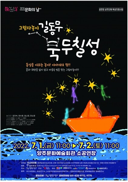 “그림자놀이 길동무 북두칠성”은 7월 1일~ 2일 1일 1회씩 총2회, 양주시문화예술회관 소공연장에서 진행된다.
