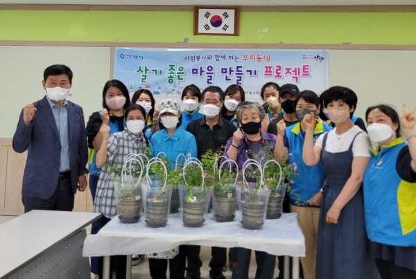 동V터전 코치 10여명과 관내 독거노인 및 한부모 가정 5가구가 참여한 가운데, 야생화를 심는 프로그램도 진행했다.