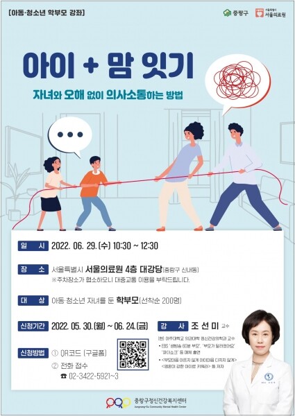 서울의료원 4층 대강당에서 열리며 강사로는 아주대학교 의과대학 정신건강의학과 조선미 교수가 나선다.