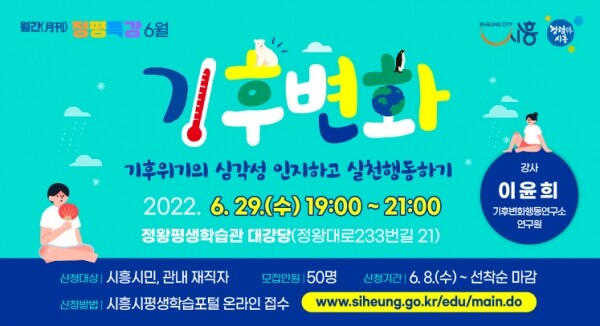 특강은 저녁 7시부터 두 시간 동안 진행되며 수강을 희망하는 시민은 시흥시평생학습포털 교육신청을 통해 무료로 접수할 수 있다.
