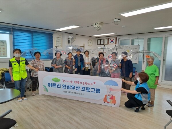 이로써 과림동 경로당을 찾은 어르신들과 함께 안전우산을 만들며 즐겁게 소통하는 시간을 가졌다.