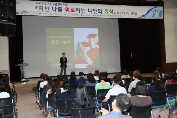 구는 2년이 넘는 시간 동안 코로나19 대응으로 몸과 마음이 소진된 직원들에게 마음치유 교육 특강을 통해 스트레스 해소 및 심리적 재충전 기회를 제공하고자 이번 교육을 기획했다고 밝혔다.