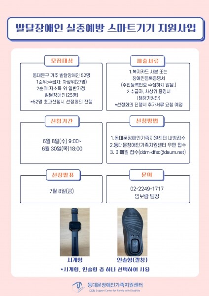 구는 지난해 동대문구 거주 발달장애인 35명을 대상으로 손목시계형 스마트기기 28개, 신발깔창형 스마트기기 7개를 지원해 대상자들의 큰 호응을 얻었다.