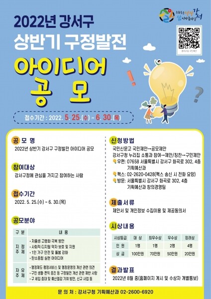 제안서와 개인정보 수집이용 및 제공 동의서를 작성, 오는 6월 30일까지 강서구청 또는 국민신문고 홈페이지를 통해 응모하면 된다.