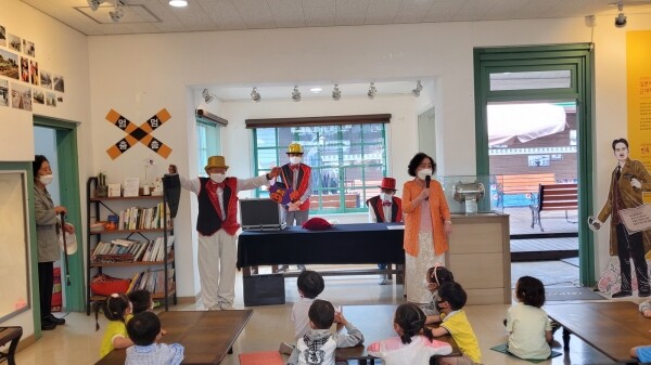 이날 고양실버인력뱅크에서 활동하고 있는 꿈전파문화공연단은 일산역 전시관을 찾은 어린이 관객을 위해 마술, 핸드벨, 손인형극 공연을 선보이고 컵 만들기 등 체험프로그램도 함께 했다.