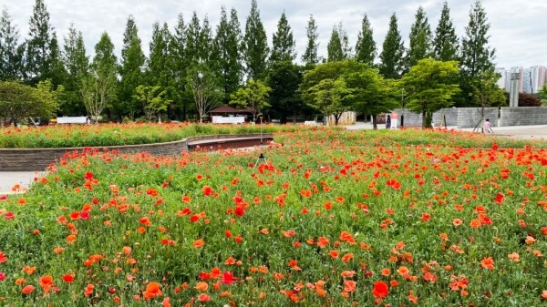 그중에서도 전면 화단 600㎡를 붉게 물들인 꽃양귀비가 시민들의 눈길을 사로잡는다.