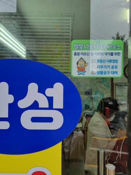 ‘별빛나눔터 중개사무소’는 관내 60개소 부동산 중개사무소의 자발적 참여로 1인 가구, 홀몸어르신 등 사무기기 이용이 어려운 주민에게 다양한 생활 공유 서비스를 제공한다.