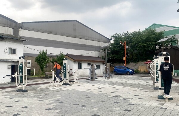 구는 재개발구역 내에 거주하는 구민들의 휴식과 건강관리를 위해 재개발구역의 빈집을 정비하면서 생긴 유휴공간에 야외운동기구 등을 설치하고 있다.