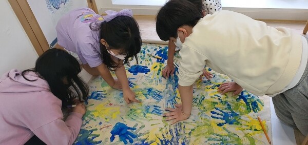 행사 참여자 모두는 현재 전쟁으로 고통받고 있는 우크라이나 국민을 위해 평화를 기원하며 초등독서독아리 ‘앗싸’ 회원들도, 엄마를 따라 도서관에 나들이 나온 꼬마 친구들도 고사리 같은 손으로 평화를 기원하는 손바닥을 찍으며 따뜻한 마음을 더했다.