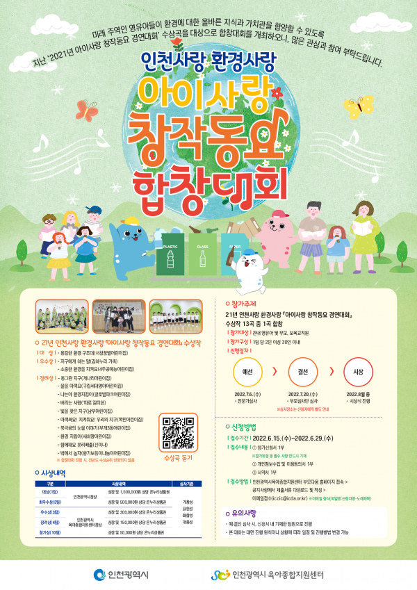 이번 합창대회는 지난해 환경 관련 주제로 진행한 인천사랑 환경사랑‘아이사랑 창작동요 경연대회’수상곡 13곡 중 1곡을 합창하는 공연이다.