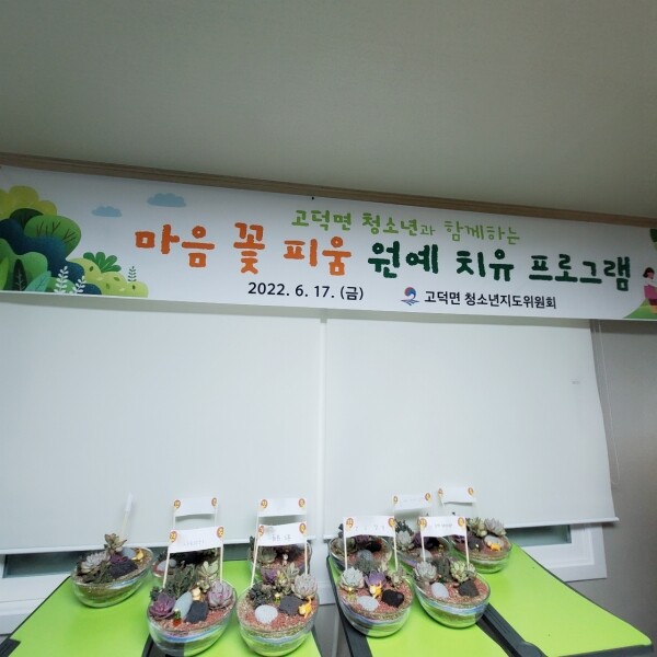 정해용 고덕면장은 “장소를 제공해 주신 최인영 센터장님과 봉사해 주신 청소년지도위원회에 감사드린다”고 소감을 전했으며 “관내 청소년들의 건전한 성장을 위해 다방면으로 살피겠다”고 전했다.