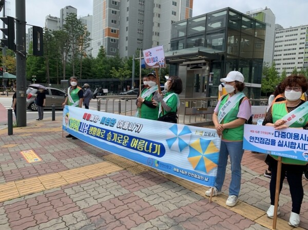 이날 행사는 ‘안전점검의 날’ 캠페인의 일환으로 김포시 안전총괄과 직원과 자율방재단원 50여명이 참여한 가운데, 미리 제작된 양우산을 노약자 등 폭염취약계층에게 배부해 폭염 피해 예방을 홍보했다.