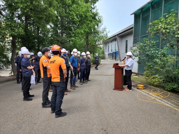 이날 훈련은 분뇨처리시설 탈취탑 용접 작업 중 불꽃에 의해 화재가 발생한 상황을 가정해 신속한 경보 전파 및 화재 신고 지휘체계 가동 직원 대피 유도 초기소화반의 자체시설 활용 초동진화 환자 응급구조 등의 훈련과 초동진화 실패를 가정한 119안전센터 소방차에 의한 화재 진압 · 대피 훈련으로 진행됐다.