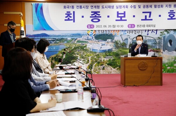 구는 20일 오전 구청 대회의실에서 노현송 구청장을 비롯해 사업 관계자 등 10여명이 참석한 가운데 ‘화곡1동 전통시장 연계형 도시재생 용역 최종보고회’를 개최했다.