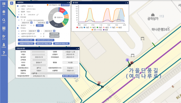 위치 기반으로 축적된 다양한 수질영향인자를 시스템의 지도상에서 바로 조회할 수 있어, 수질 이상의 원인이 될 수 있는 여러 가능성을 보다 직관적이고 종합적으로 검토할 수 있다는 것도 특징이다.