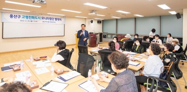 이날 발대식은 성장현 용산구청장과 2기 어르신 모니터링단 30명이 참석한 가운데 위촉장 수여, 격려사, 기념촬영, 실무교육, 분과 구성 회의 순으로 1시간 동안 진행됐다.
