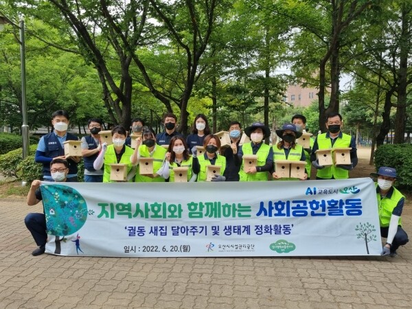 이러한 새들의 보금자리 마련을 위해서 궐동행복마을관리소뿐 아니라 오산시환경사업소 공원녹지과와 오산시설관리공단 15여명이 함께해 인공 새집 설치 장소를 모색하고 선정해 진행했다.