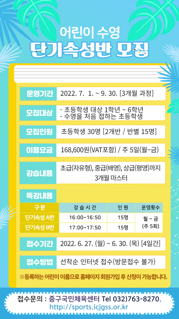 강습 내용은 자유형, 배영, 평영까지 3개월 완성으로 진행된다.