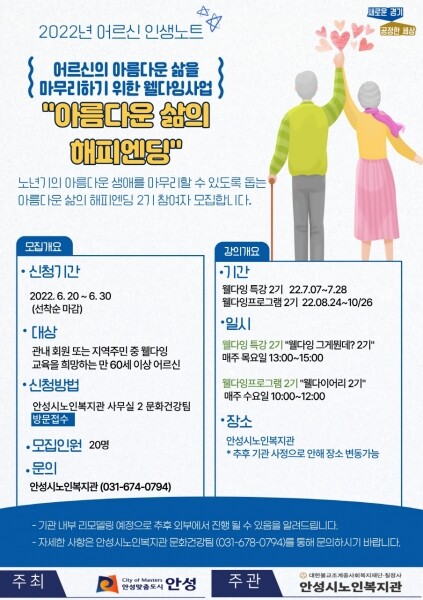 안성시노인복지관, ‘아름다운 삶의 해피엔딩’ 2기 참여자 모집