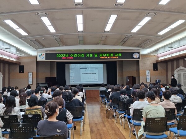 이번 교육의 주요 내용은 2022년 보육사업안내 개정사항, 어린이집 운영 및 재무회계, 지도점검 대상 전반사항 등으로 이뤄졌다.