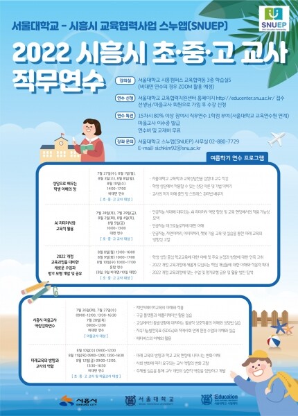 여름학기 연수를 시작으로 오는 하반기에는 실습·심화과정 위주로 진행되는 ‘시흥시 마을교사 역량 강화 연수’와 서울대 교수자와 참가 교사가 함께 연수과정을 구성하는 ‘학교 단위별 맞춤형 연수’가 운영된다.