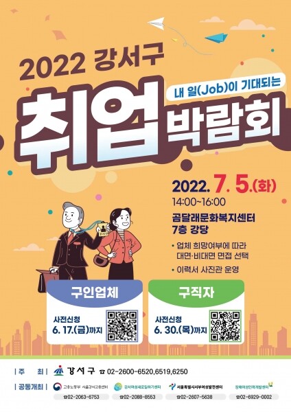 구는 오는 7월 5일 곰달래문화복지센터에서 ‘내 일이 기대되는 2022 강서구 취업박람회’를 개최한다고 밝혔다.