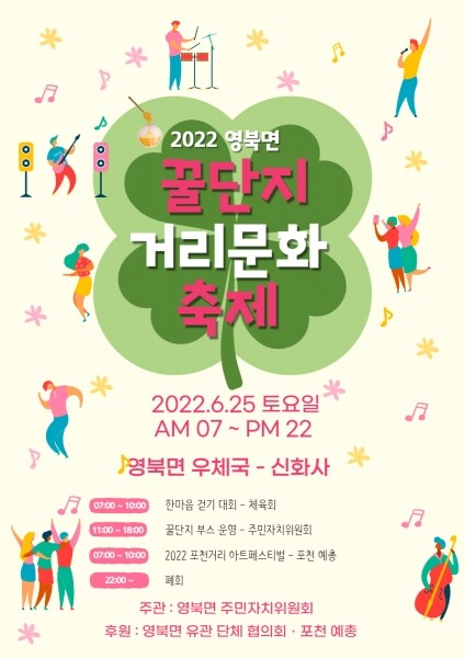 최재두 영북면장은 “영북면 꿀단지 거리 문화축제는 주민들과 1기갑여단, 영북면 체육회, 주민자치위원회, 포천예출총연합회 등 민·관·군이 한마음으로 준비했다 함께 축제를 빛낼 수 있도록 시민분들의 많은 참여 바란다”고 전했다.