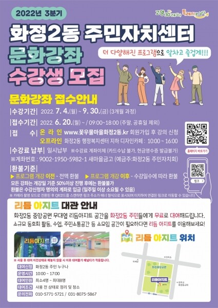 최진홍 화정2동 주민자치회장은 “오랜만에 주민자치 프로그램을 재개한 만큼 앞으로 다양한 문화강좌를 개설, 확대 운영해 지역 주민들이 문화생활을 향유하고 자기계발을 도모할 수 있는 공간으로 거듭 발전할 수 있도록 최선을 다하겠다”고 밝혔다.